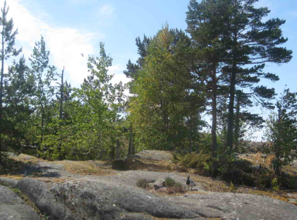 - keskiosassa harvaa, pääosin männyistä koostuvaa puustoa