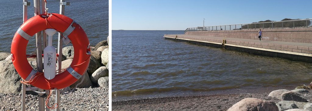- Helsingissä käytetään usein pelastusvälinepylväitä, jotka sisältävät seuraavat tarvikkeet: