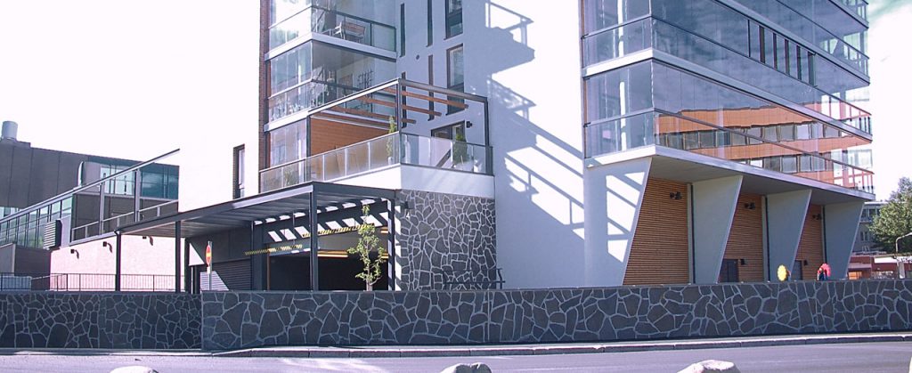 Pystypintojen luonnonkiviverhoilut. Rudus, Juuso Rainio 2017.