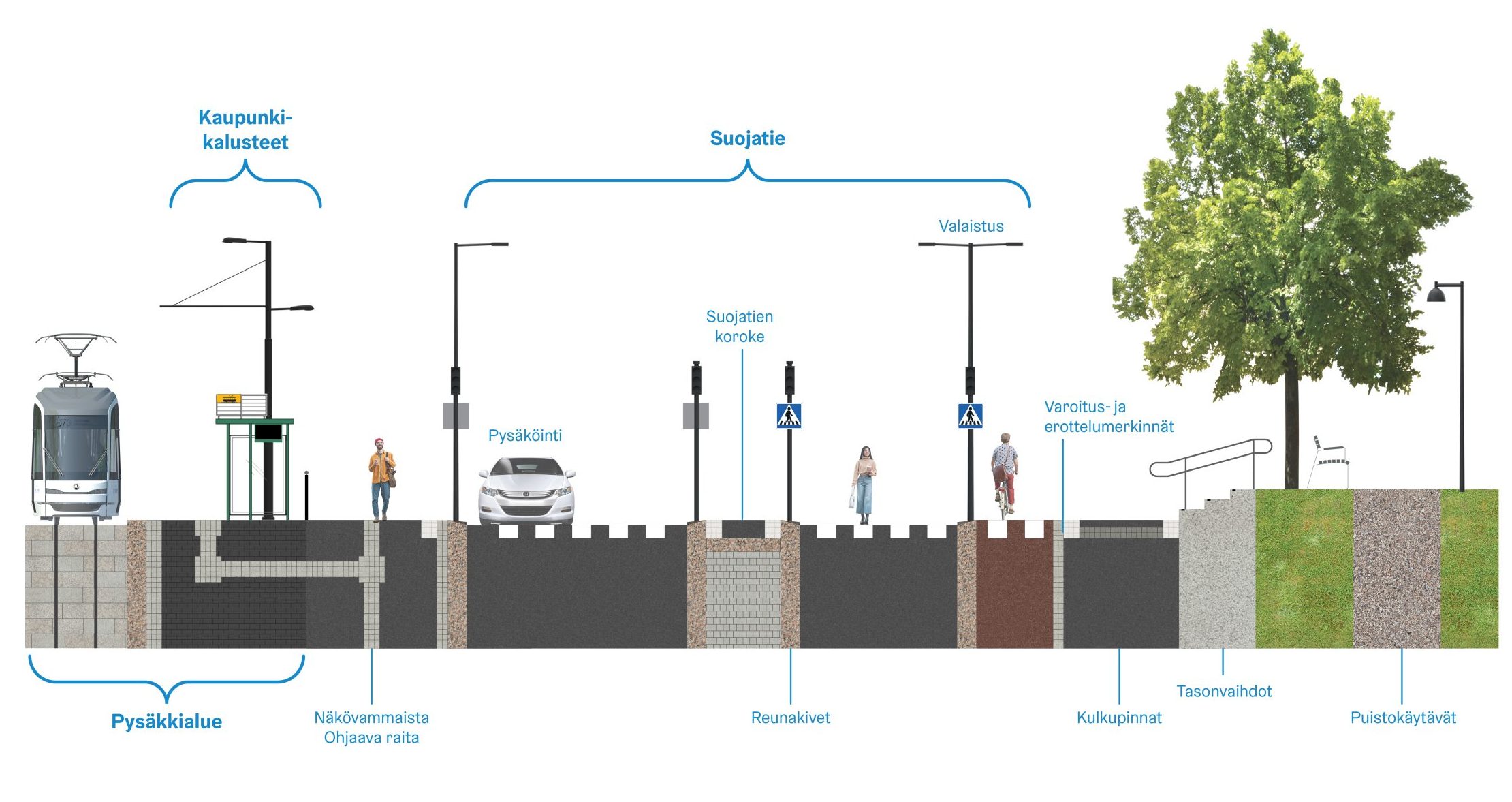 Esteettömyyden ja saavutettavuuden toteuttamiseksi Helsingin kaupunki on määritellyt seuraavat tavoitetasot.