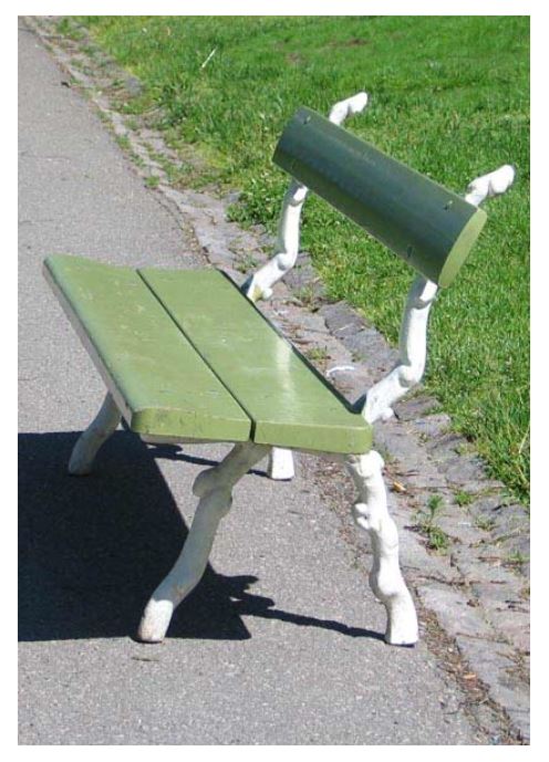 Mallitiedot: Koivunjalkapenkki on perinteinen Helsingissä yleisesti käytössä ollut puistojen penkki. Kansainvälistä mallia on käytetty 1800-luvun lopulta lähtien. Valurautajalkojen koivunjalkakuvio tuo kansallisia piirteitä. Malli ei ole esteetön, mutta on haluttu säilyttää kalustevalikoimassa kaupunkikuvaan vakiintuneena ja pidettynä puistonpenkkinä. Puuosia valmistetaan vanhan mallin mukaan.