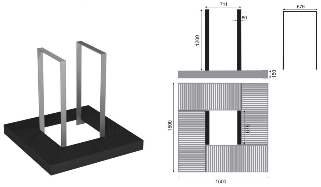 Mallitiedot: Jalankulkualueen malli on tarkoitettu pääasiassa kivikaupunkiin ja aluekeskusten jalankulkuympäristöön. Puunsuoja koostuu kannatinkehikosta, maaritilästä ja runkosuojasta. Jalankulku- ja liikennemalleissa on identtiset kannatinkehikot ja maaritilät. Kaarimaiset runkosuojat asennetaan poikittaisesti pääliikkumissuuntaan nähden. Puunsuoja voidaan asentaa myös aiemmin istutetulle puulle. Malli on Helsingin kaupungin oma.