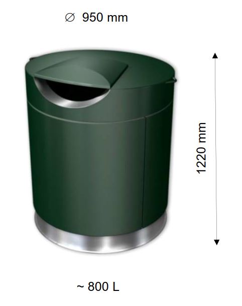Mallitiedot: Teräksestä valmistettu roska-astia kohteisiin, joissa tarvitaan tilapäisesti tai kausiluonteisesti lisää roska-astioita. Tyhjennys yksipistenostona. Malli on Helsingin oma. Tuote on mallisuojattu.