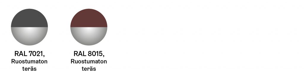Aluekeskus ja asuinalue: RAL 7021, Black Grey ruostumaton teräs, RAL 8015, Chestnut Brown ruostumaton teräs