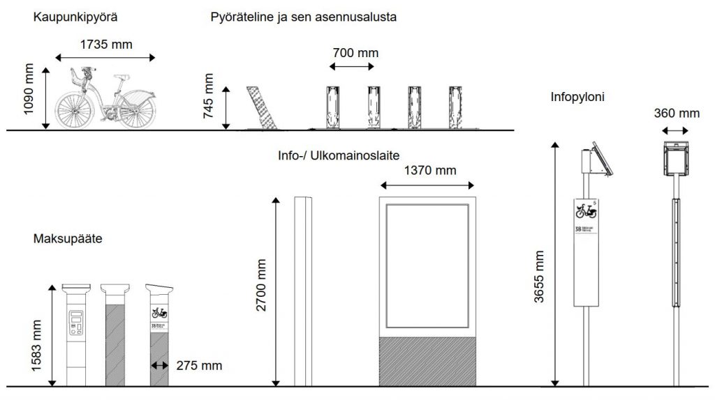 Mallitiedot: Kaupunkipyörä on yhteiskäyttöpyörä Helsingin kantakaupungissa liikkuville asukkaille ja vierailijoille. Kaupunkipyöräjärjestelmä täydentää joukkoliikennepalveluja. Kaupunkipyörät ovat mainosrahoitteisia. Laitteet ovat HKL:n sopimuskalusteita. Rakentamisesta ja ylläpidosta vastaa mainosyrittäjä. Mallisto on mallihyväksytty.
