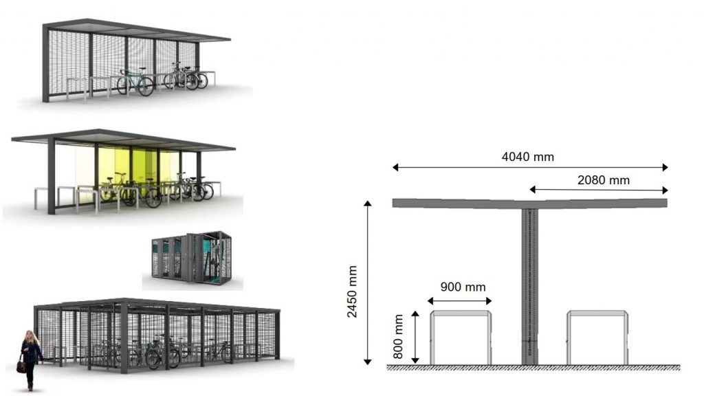 Mallitiedot: Liityntäpyöräilyn kalustemallisto on kehitetty yhteistyönä, jossa mukana olivat Helsinki, Espoo, Vantaa, HKL, HSL, VR, Liikennevirasto ja ELY-keskus. Tuoteperhe on modulaarinen ja ulkonäöltään sijoitusympäristöön sovitettavissa. Eri osista voi koota tarvittavan pituisen telineiden tai katoksen kokonaisuuden. Ulkonäköön voi vaikuttaa katosten ja telineiden värivalinnoin.