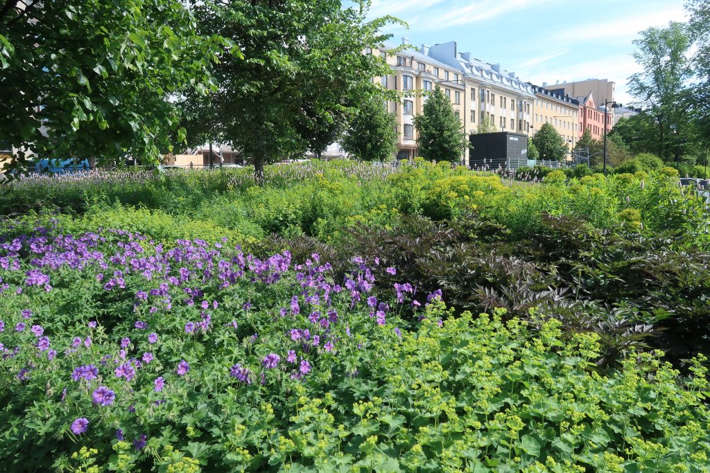 Luonnonperennojen käyttö on hyvä vaihtoehto esimerkiksi luonnonmukaisilla rannoilla ja ääriolosuhteissa. Ruohovartisia, kaupunkiluonnon monimuotoisuutta edistäviä monivuotisia kasveja käytämme myös niinsanotuissa uusympäristöissä kuten niityillä, pientareilla ja viherkatoilla. Helsingissä haitallisia vieraslajeja emme istuta, ja poistamme peruskorjausten yhteydessä aiemmin istutetut, haitallisiksi osoittautuneet vieraskasvit.