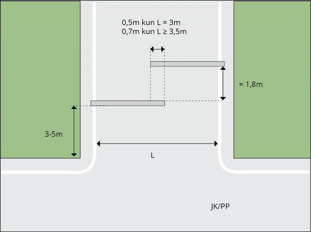 1,5 m on tyypillinen pollareiden sijoitusväli, kun halutaan estää autolla ajo kävelyalueelle.