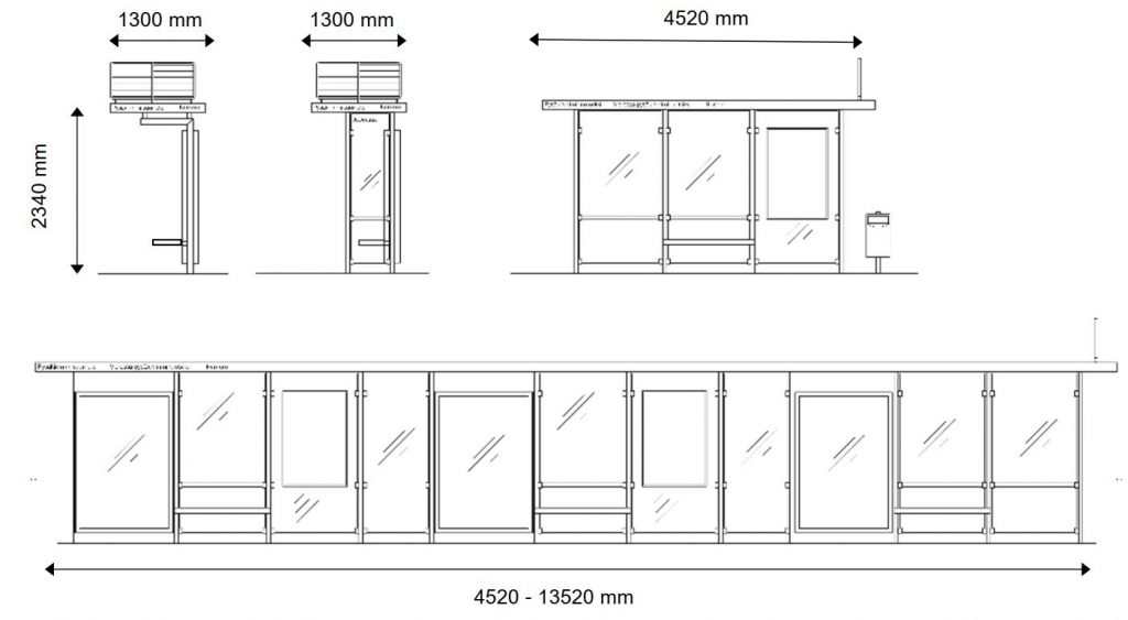 Mallitiedot: Pysäkkikatokset ovat Kaupunkiliikenteen sopimuskalusteita. Roska-astiana käytetään 140 l kokoista HKI mallia, kortti H1. Rakentamisesta ja ylläpidosta vastaa mainosyrittäjä. Pysäkkimallisto on mallihyväksytty.