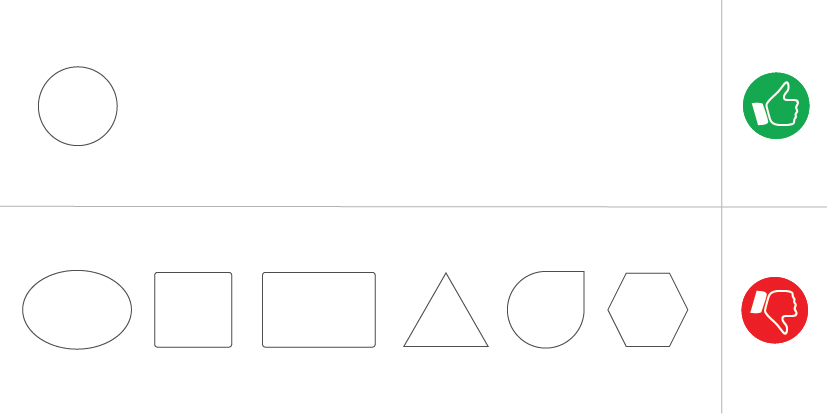 HYVÄKSYTTÄVIÄ on kulmistaan hieman pyöristetty geometriseen perusmuotoon (kupoli, puolipallo, kalotti) pohjautuva yksikappaleisuutta tavoitteleva linjakas muoto (kohta 2), jonka pohjan muoto on ympyrä (kohta 1).