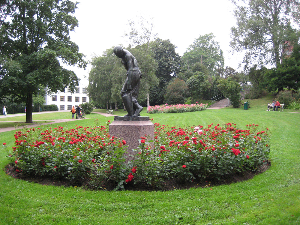 Perinteinen ryhmäruusuistutus Tove Janssonin puistossa.