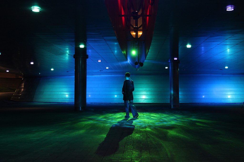 Länsilinkin alikulkuun toteutettiin "Under Water" valoteos osana Baanan valoteosten sarjaa 2015. Kuva Juhana Konttinen.