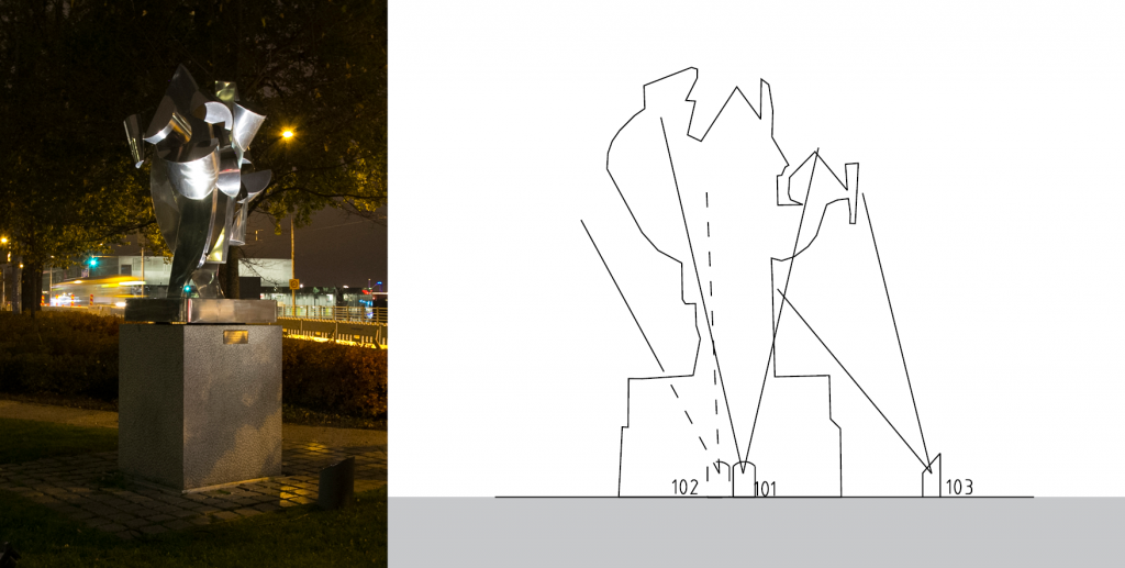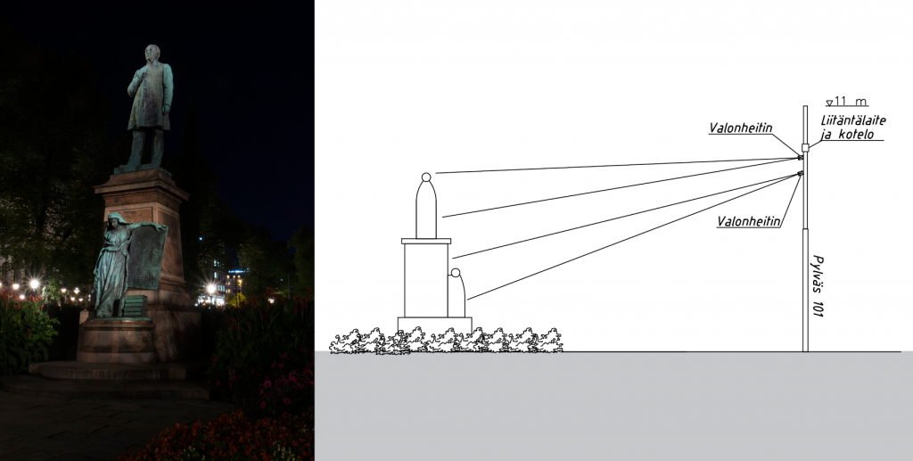 Hyvin toteutettu valaistus korostaa teoksen piirteitä tai teemaa. Valaistuksella teokselle voidaan halutessa antaa myös päiväilmeestä täysin eroava ilme. On suositeltavaa, että teoksen valaistus suunnitellaan ja toteutetaan samanaikaisesti teoksen kanssa. Myös myöhemmin tehty valaistusasennus on mahdollinen.