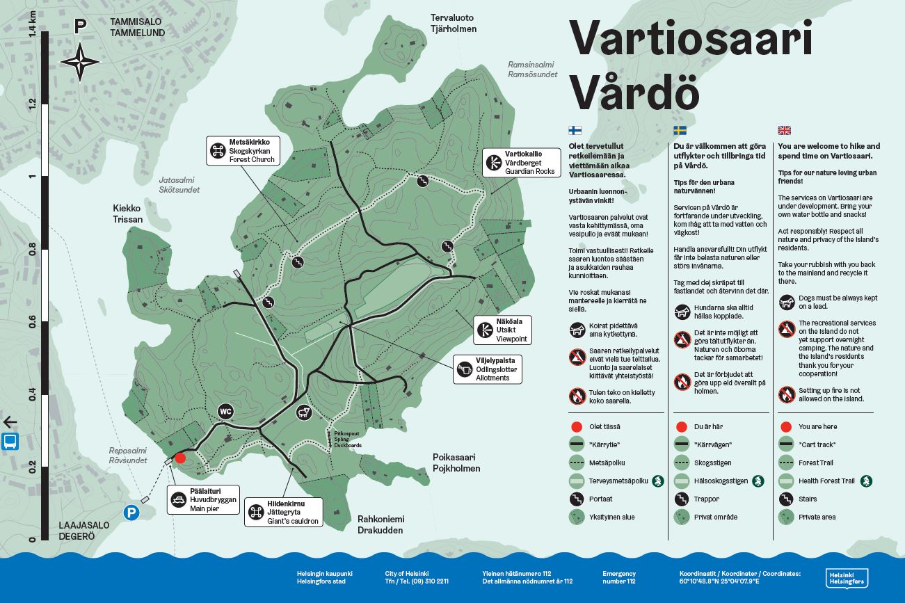 Vartiosaaren reittejä, opasteita, käymälöitä ja jätehuoltoa on paranneltu viime vuosina ja lisäksi saareen pääsyä helpotettu tihentämällä vesiliikennettä.
