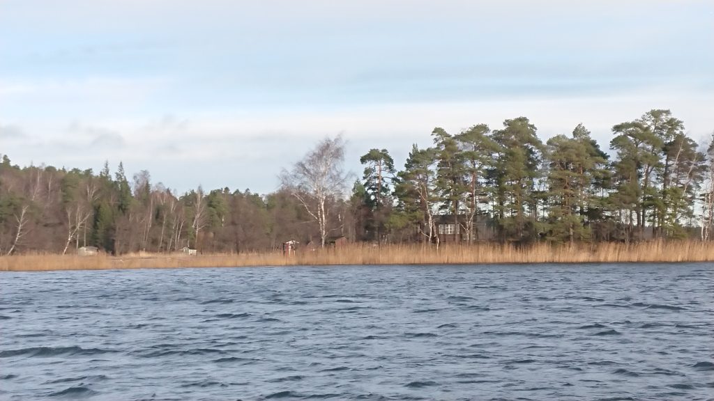 Kaksi ruovikon ympäröimää jokamiessaarta Vartiosaaren pohjoispuolella